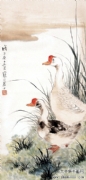 江寒汀(1904-1963),江苏常熟虞山镇人。又名江鸿,庚元、石溪、上渔、寒艇。十六岁从同里陶松溪习花鸟画,曾任教于上海美术专科学校。二十八岁开始卖画为生。中华人民共和国成立后为上海中国画院画师。为中国美术家协会会员,美协上海分会理事 。 曾任上海市第二、三届政协委员 。 纵观宋、元名迹,悟其谨严、放纵之情,对双钩填彩,没骨写生,均所擅长,尤擅描绘各种禽鸟,家中养许多鸟兽,以供写生之用。风格走清代华岩一路,笔墨老到,色彩明丽,形象生动,构图稳健,对虚谷、任颐的画风深有研究,偶尔仿制,几可乱真,有“江虚谷”之称。 传世作品有《杜鹊鹦鹉》、《白鹰》,20余丈的长卷《百鸟图》,1960年应周恩来总理邀请为人民大会堂绘制的巨幅《红梅图》等,亦有1983年上海人民美术出版社出版的《江寒汀百鸟图》,1992年古吴轩出版社出版的《当代名画家江寒汀》、北京荣宝斋出版的《花鸟画名家江寒洒画册》,1995年上海人民美术出版社出版的《江寒汀百卉册》等。 |